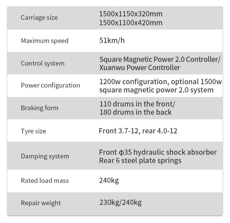 Suspension System: Front φ35 External Spring Shock Absorber, Rear 6-leaf Wide Leaf Spring