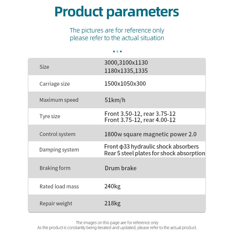 Suspension System: Front φ33 External Spring Shock Absorber, Rear 5/6 Leaf Spring